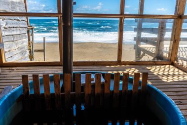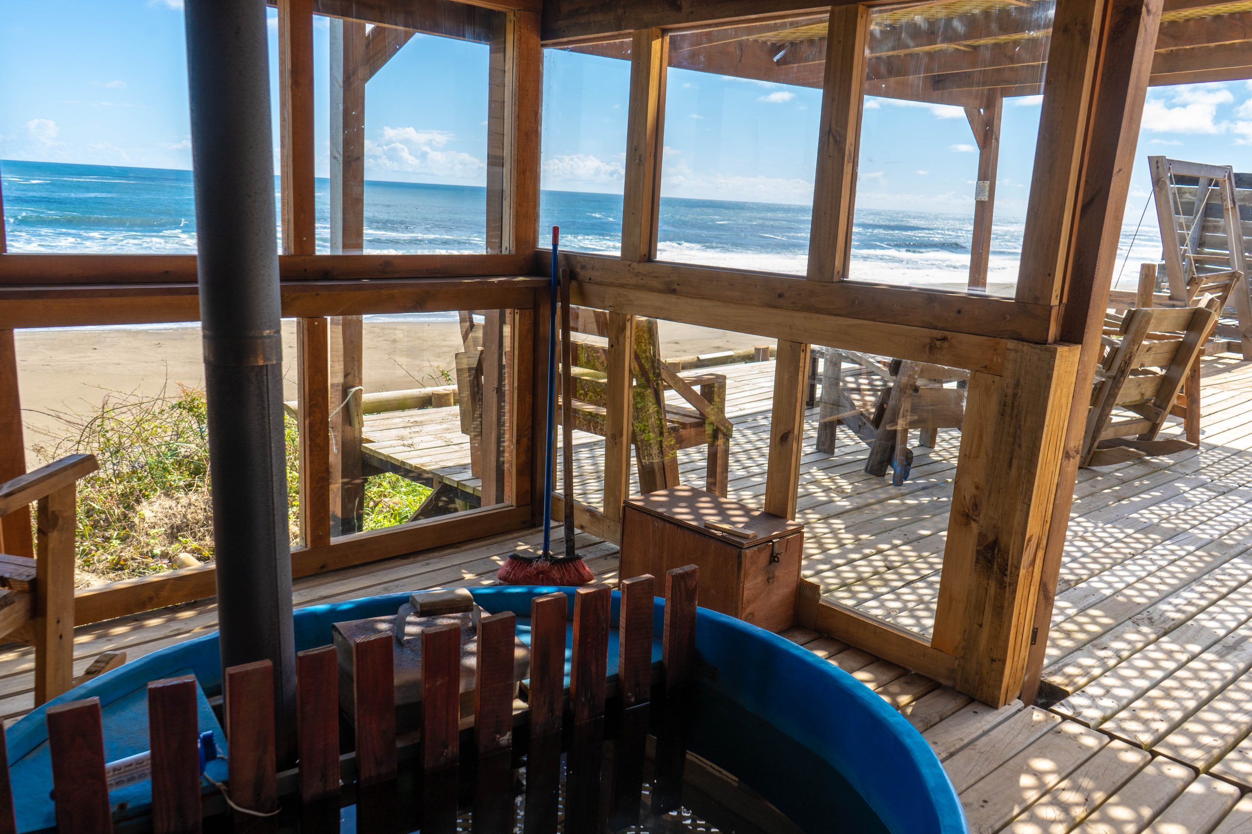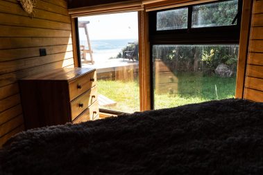 Domos tipo cabañas para 8 personas con tinajas privadas, vista al mar y bajada a la playa, en Curiñanco, Valdivia, Región de Los Ríos, Chile